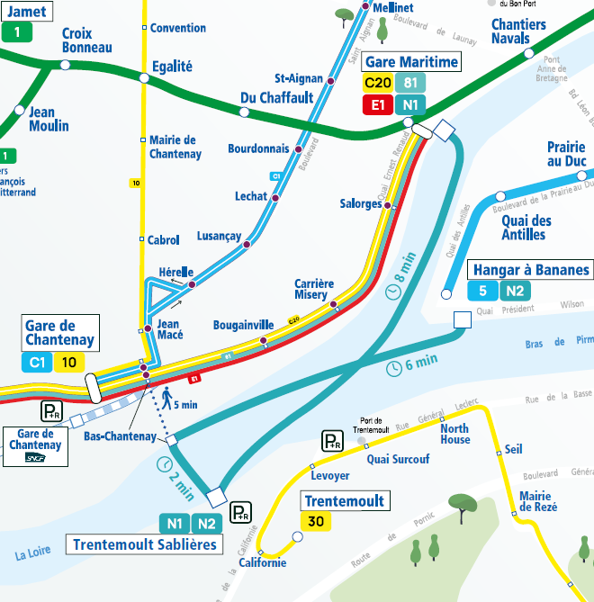 Toujours fidèle au poste entre Trentemoult-Sablières et la Gare Maritime, mais avec un embarquement déplacé de 600 m.