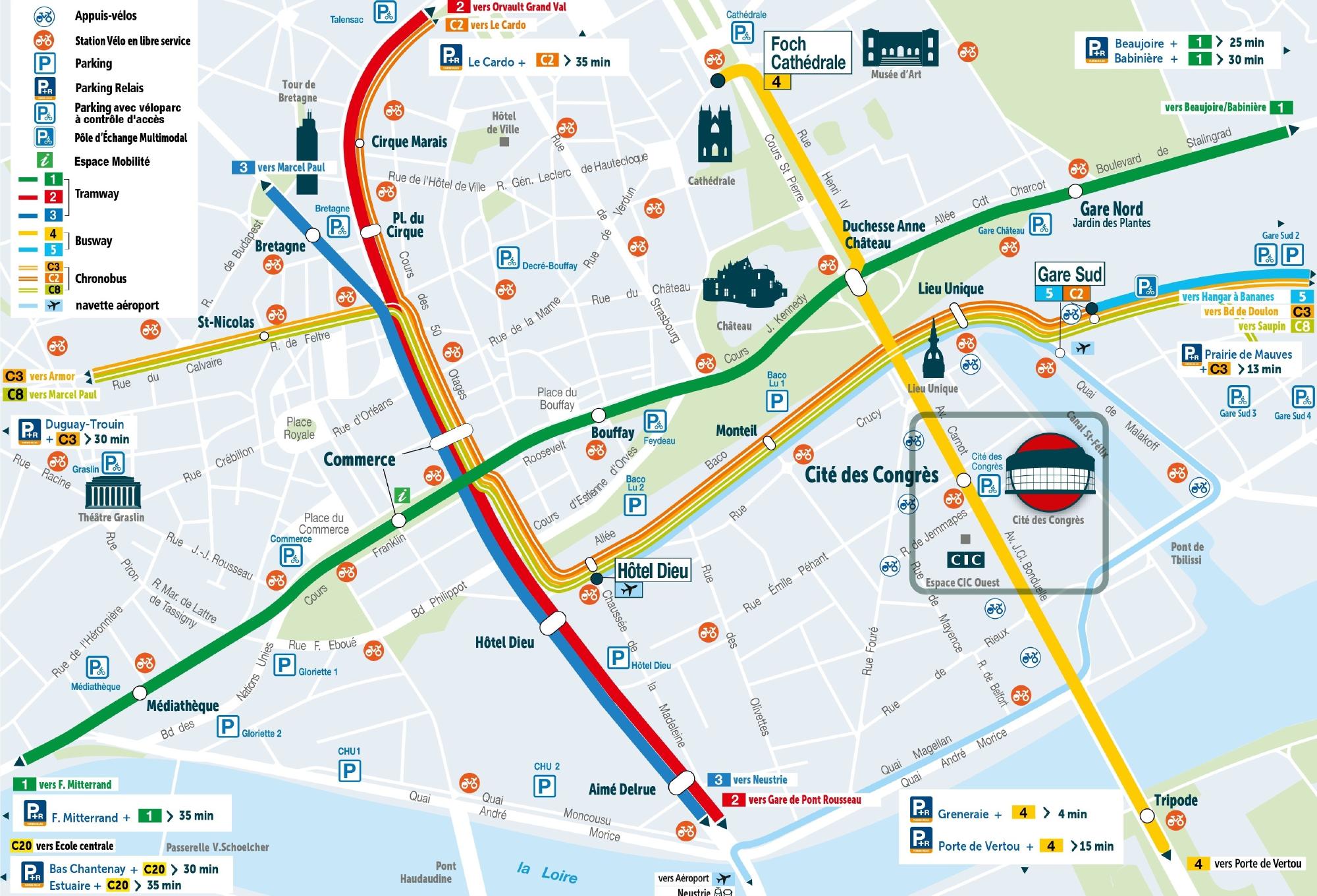 La Cité des Congrès est très bien desservie par le réseau Naolib :